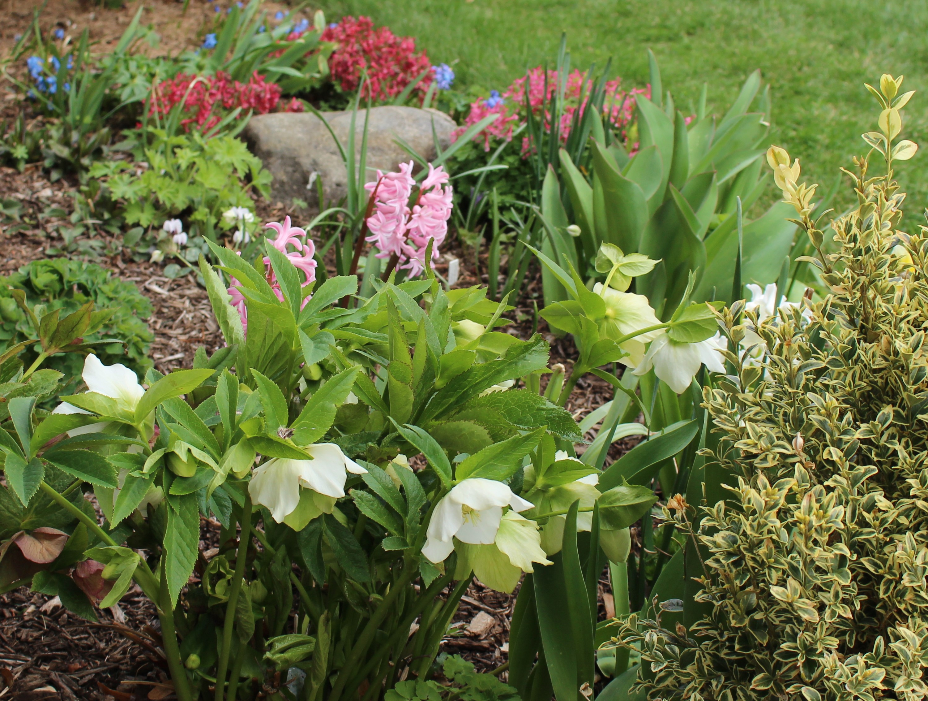 Corydalis, hyacinths and hellebores filling in now that the snowdrops and eranthis have gone over.  In another month columbine, delphinium, hostas and hellebore foliage will take over for the summer.