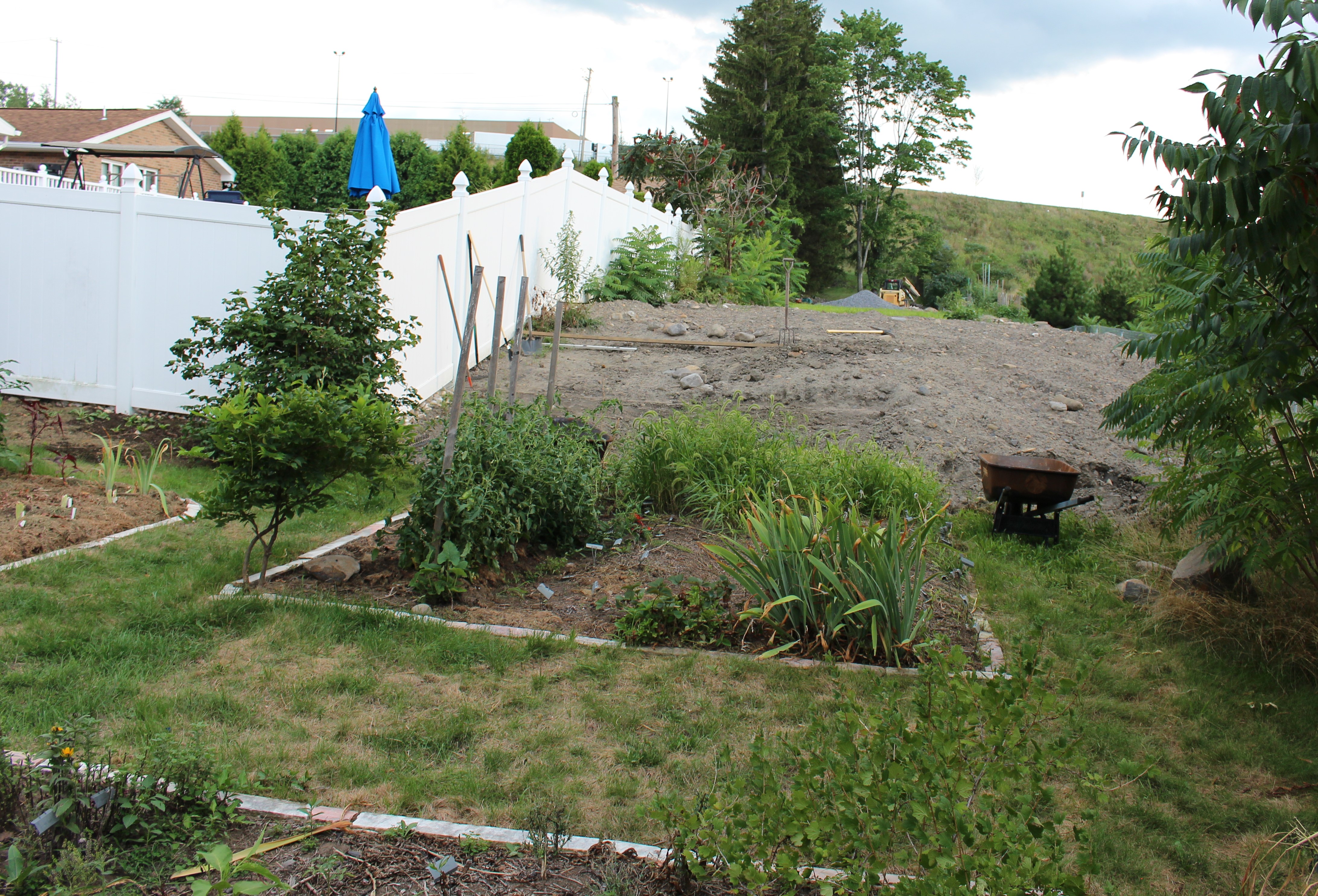 To give a final dose of reality to this mess of a post here’s a photo of the roughly graded fill which has been dumped next door and which has also been added to my project list. It sounded like a good idea when my neighbor offered to just keep going with his own fill project, but now I’m faced with digging and raking and seeding. The plan is for a new meadow garden but it sure is an inviting bit of real estate there behind the MIL’s house. Sunflowers would do well there I’m sure, but for now I feel like I’m in a prison chain gang as I break up the fill with a pick so I can shovel it over into the low spots.
