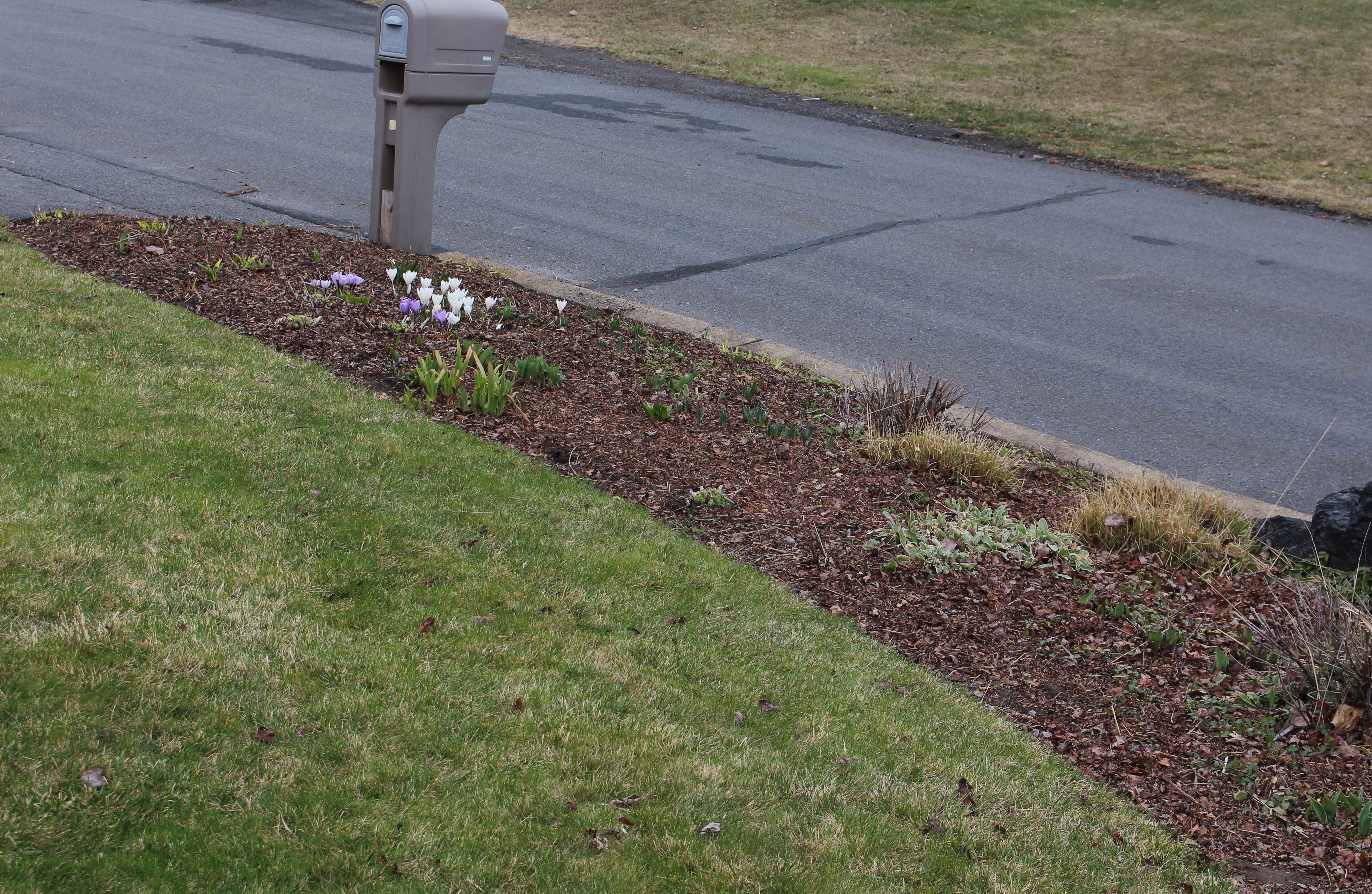 Remember the tulips I dug? In a moment of revelation I realized planting tulips was more satisfying than seeding grass so why not just call it a new bed and stick the bulbs there?