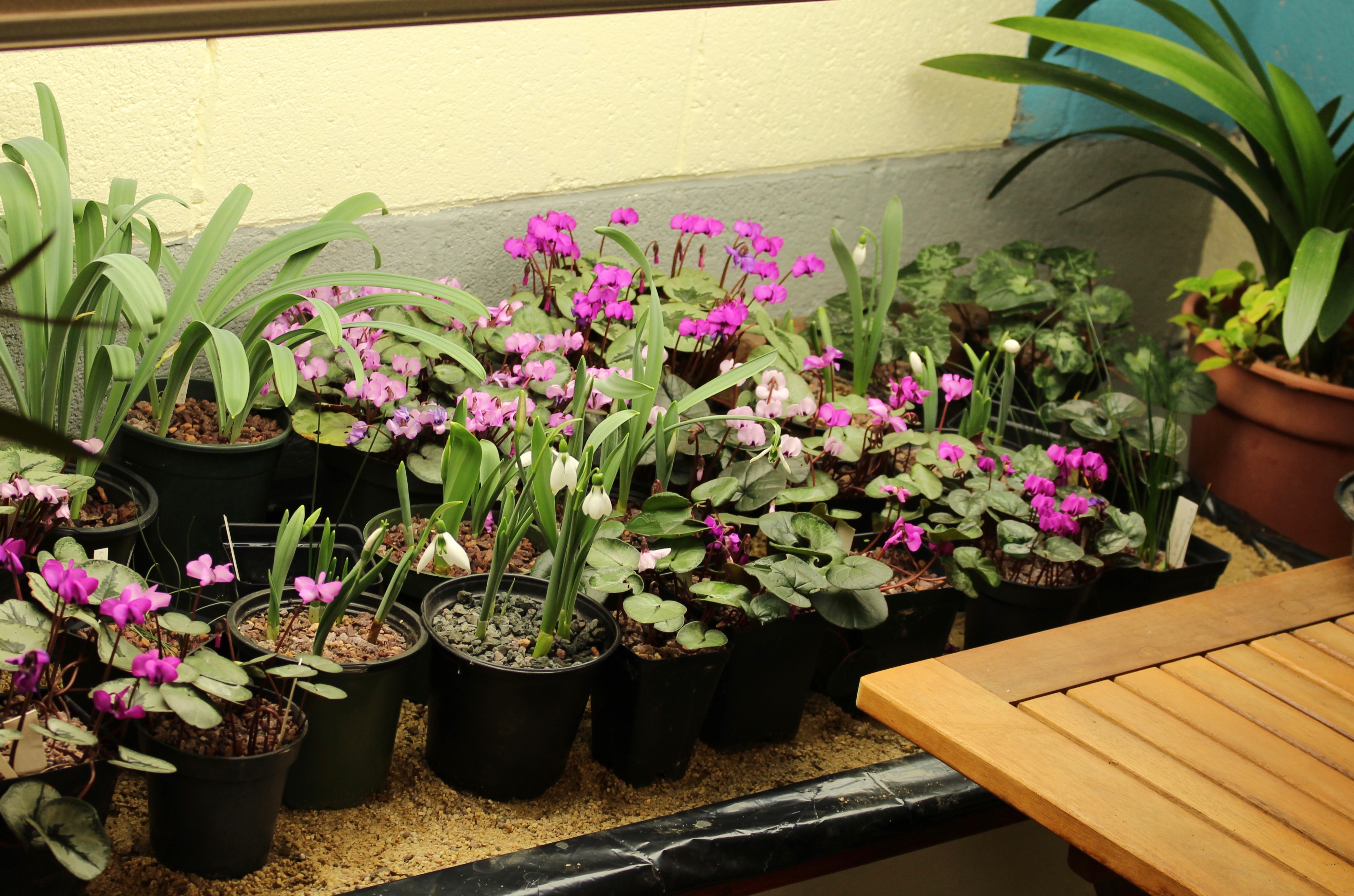 The coldest corner of the workshop is reserved for hardy cyclamen and other forced bulbs which don’t mind a frigid draft or dip close to freezing.