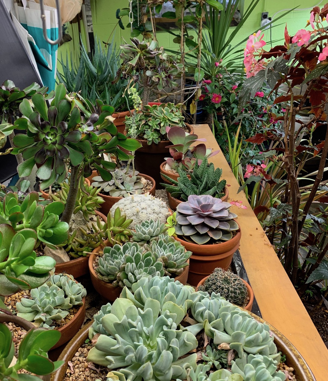 A few bigger things overwintering and a few smaller things on a bench.
