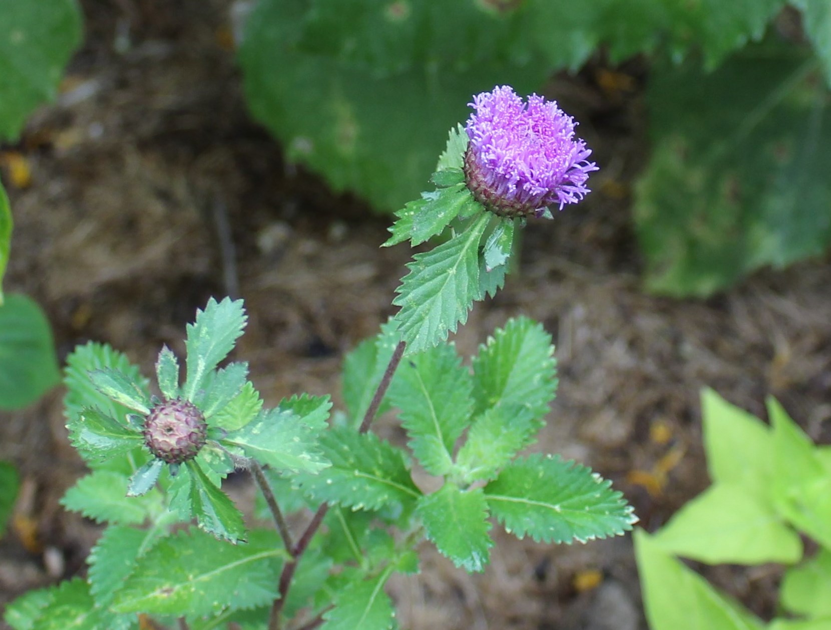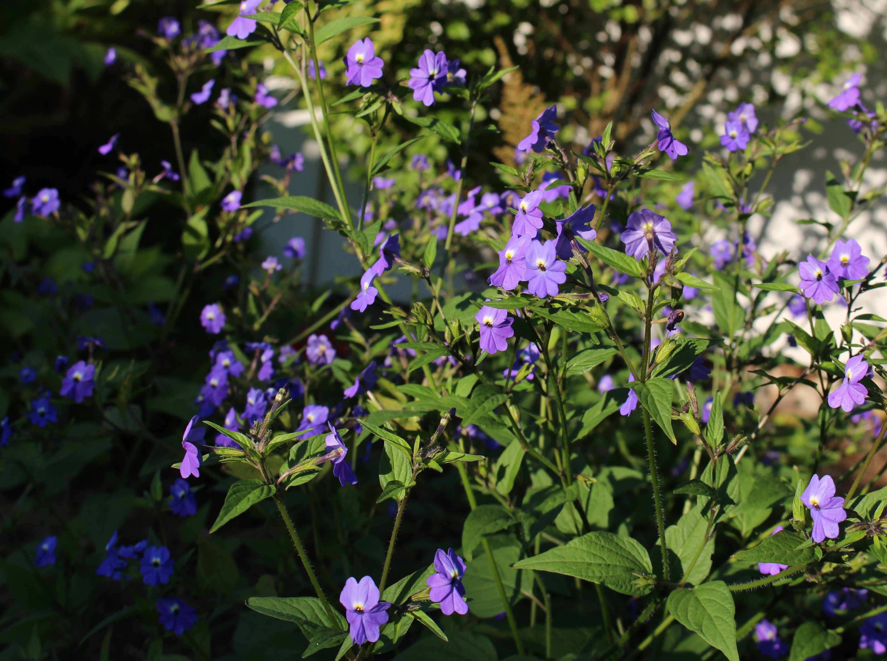 A stray hollyhock seedling in front of ‘Royal Purple’ smokebush (Cotinus). Normally the bush is cut back but this year was left unpruned in order to smoke (bloom).