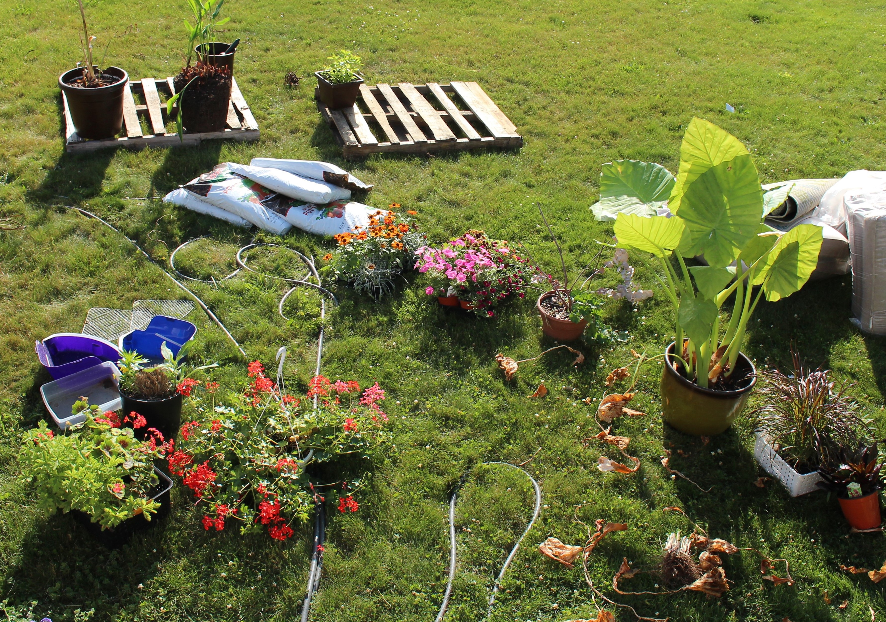 So the deck was an innocent start but then as you may recall there was the bulldozing of the daylily farm which happened as June rolled into July. Things were set into motion. Rather than replant a few daylilies, three unearthed stones became a rock garden and you know about that, but the rock garden needed a coating of sand and of course I got too much because sand is always useful around here. Some of the extra sand was used to level out an area where the kid’s old playhouse, aka ‘spider house’, could be placed. We have no use for a kid’s playhouse currently yet no one to give it to but what if it was repainted and accessorized? Enter a rebranding of spider house to ‘Begonia House’ since perhaps this area provides just the right filtered shade which the begonias seem to enjoy, and “I think pink would be nice for my house” became the color theme. A green roof? We shall try. The results straddle the line between garish, spray-painted plastic garden trash and elite garden whimsy but I like to pretend that it’s whimsy. Several great gardening estates have whimsical garden playhouses for children so there you are. Whimsy in the garden, except my visitors like to over-pronounce the ‘Wh’ as in Cool Whip and I guess referring to it as whhhhhimmmmsy is as classy as we will ever get.