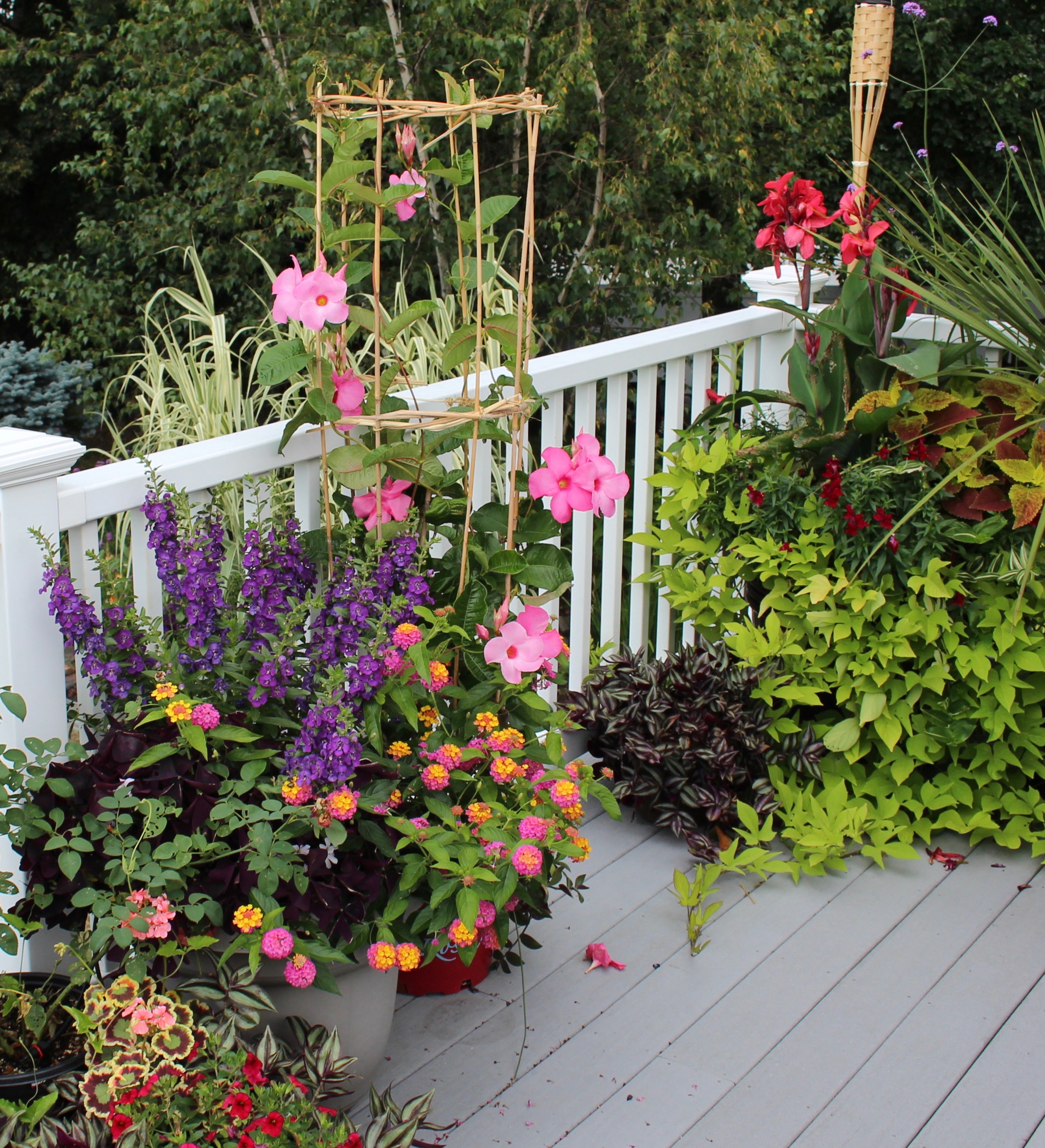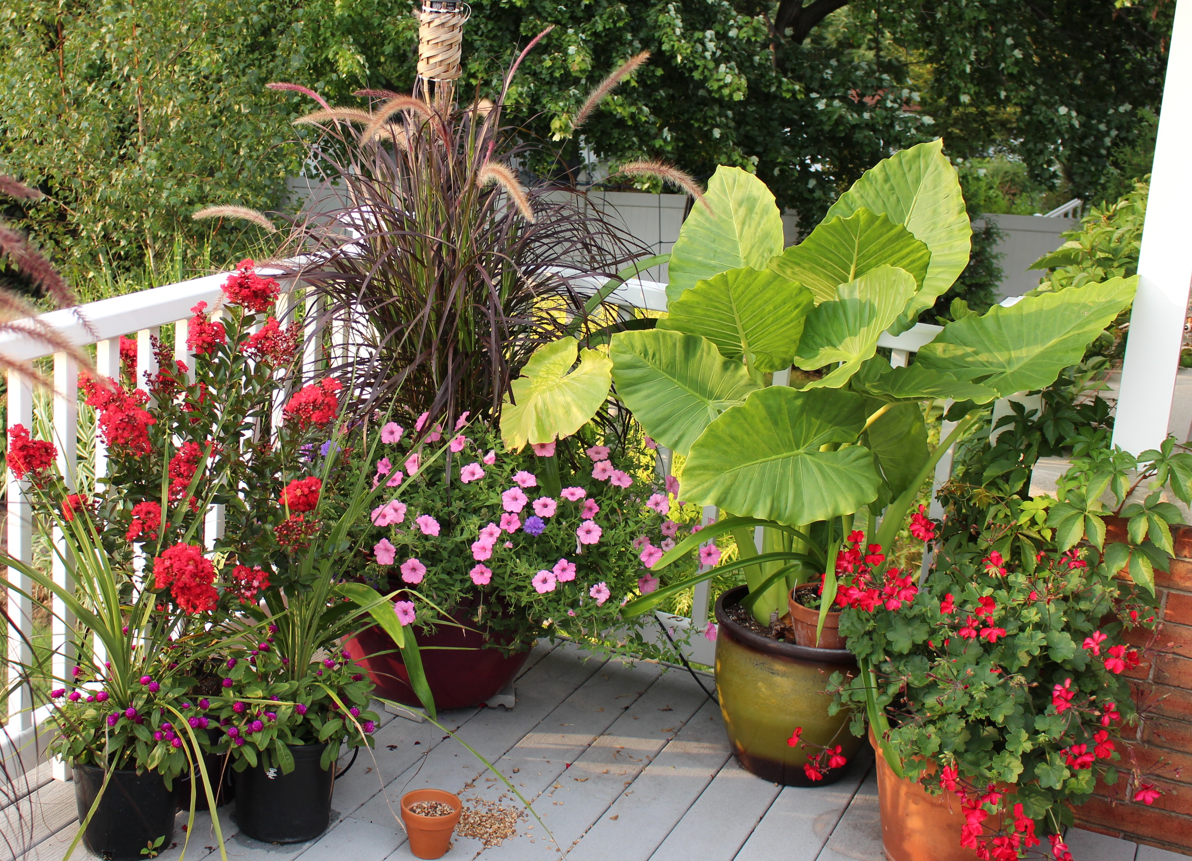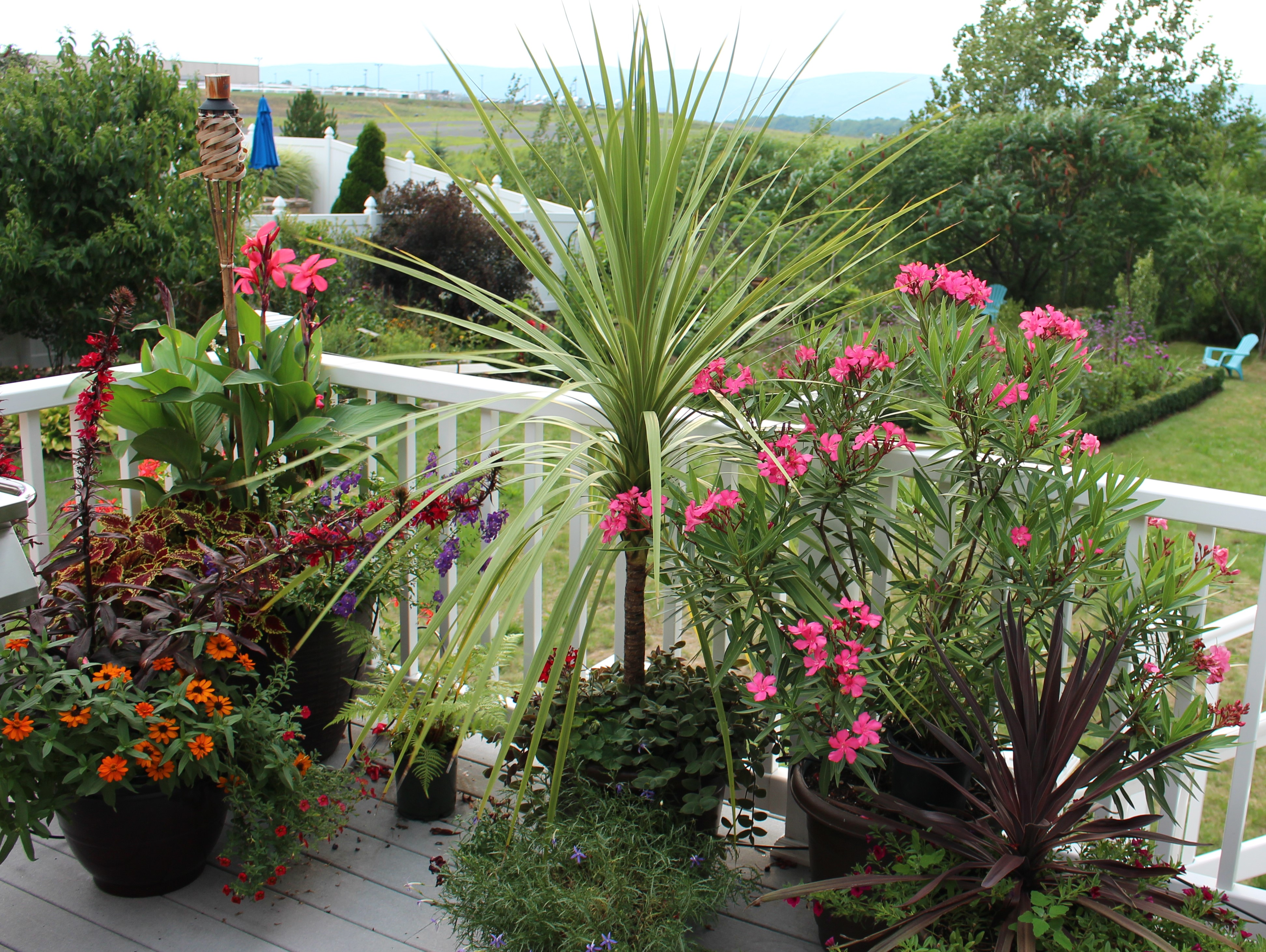 The deck was more foliage than flowers this year and now I’m faced with how to overwinter a pair of palms which were probably cheap enough to leave outside, but I could never do that.