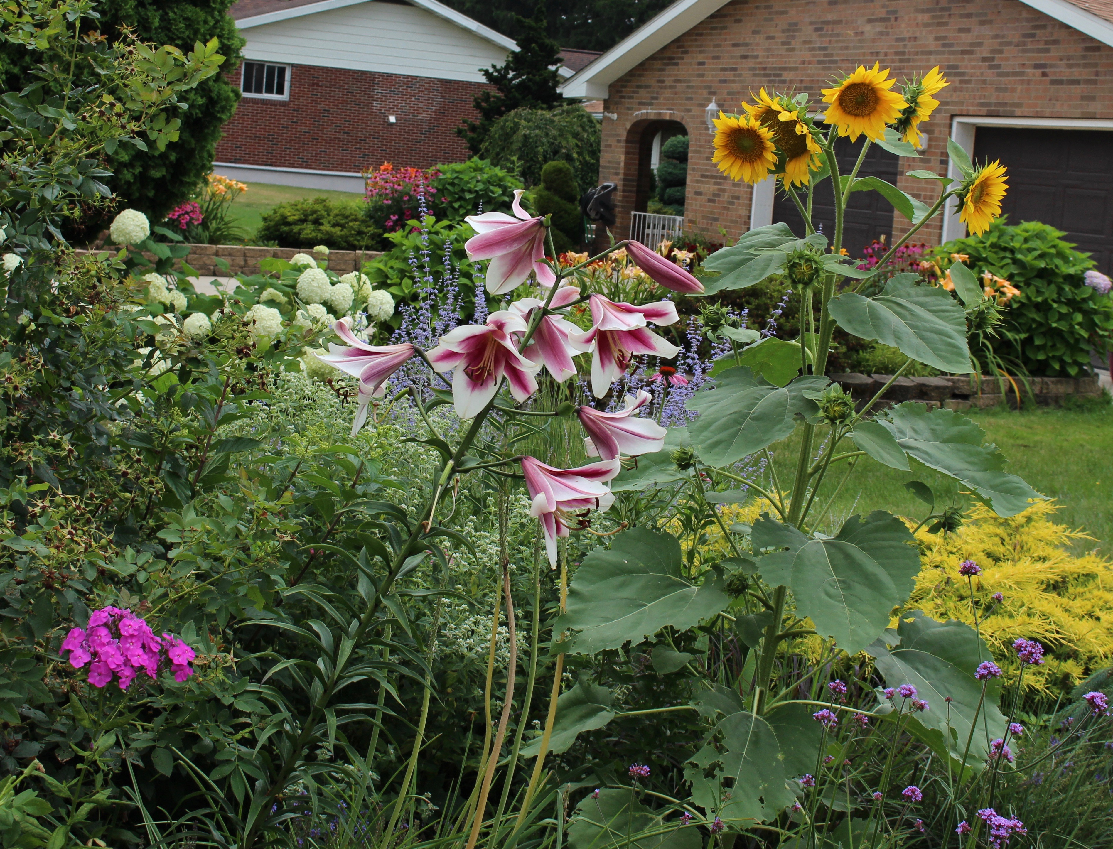 From the other end of the front border… at just the right angle… things look amazing. The main flush of summer color is beginning!