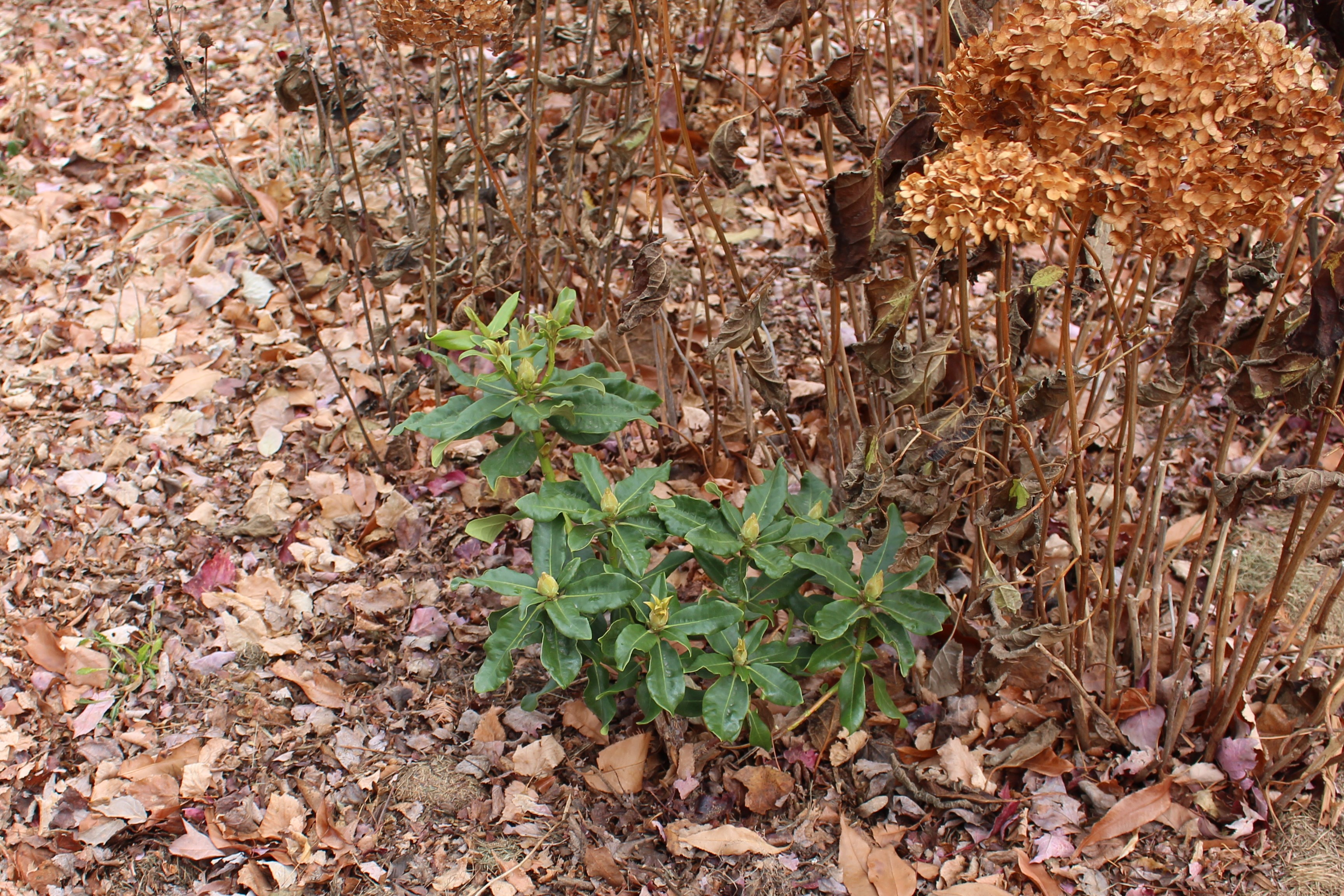 ‘Winter’s Rose’. A beautiful flower on a dwarf plant, but I do remember Charles warning me that it’s usually too late a bloomer to put on a good show, and all those unopened buds will probably freeze off during the winter.