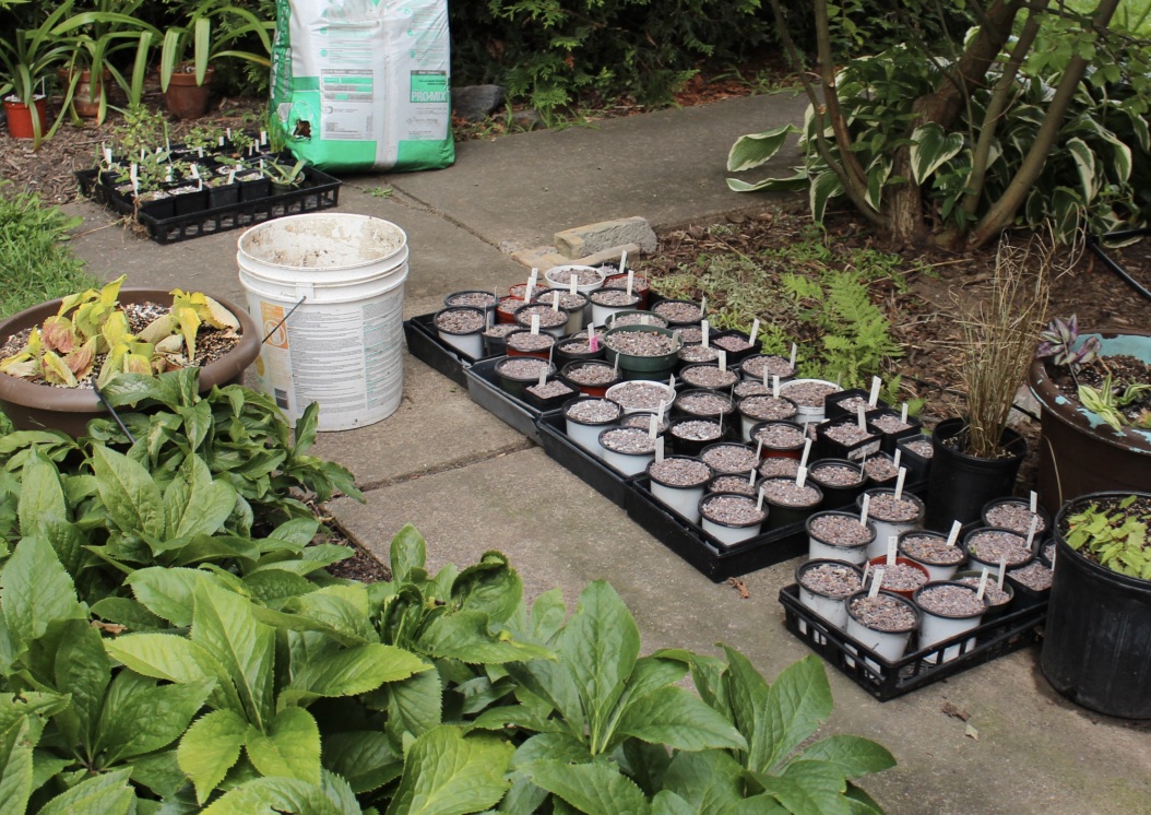 Sorry but I do have to mention one more camellia. Charles donates dozens and dozens of seed varieties each year to (among other places) the Hardy Plant Society, Mid Atlantic group seed exchange. Over the years I’ve tried quite a few, and as we wandered the gardens it was fun to see the parents of many of my plants. Camellia ‘Survivor’ was named after surviving a cold snap which many others did not, and it’s one of the parents of seedlings here in my own garden. Hopefully the now 18 inch seedling growing here will someday also show off those hardy genes, and give this gardener a fall flower or two.