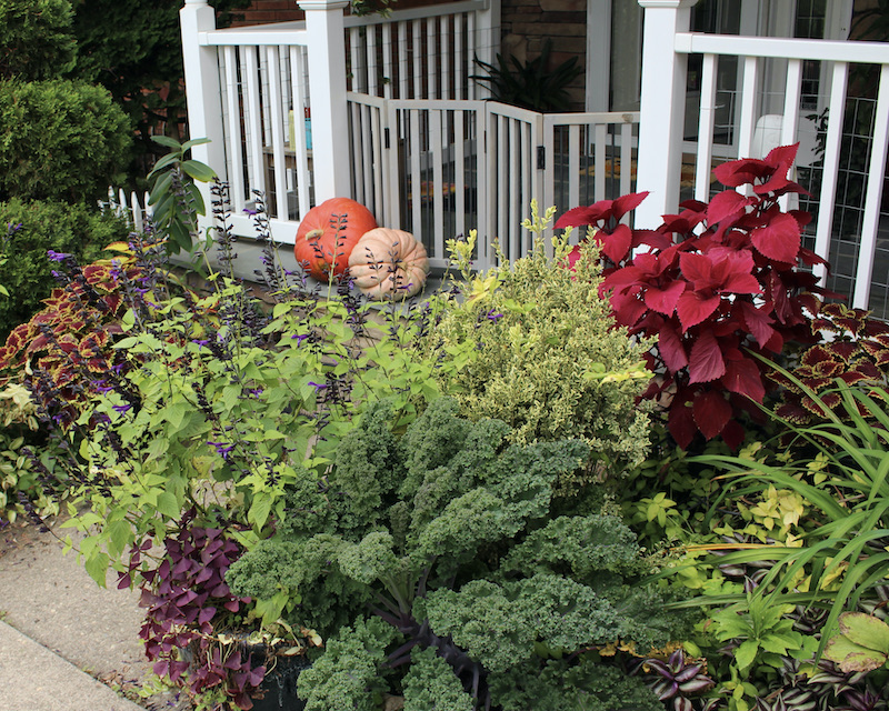 I still love the pumpkins and finally found a use for the peppers which have been sitting on the side of the house all summer. The coleus also look perfect, but that will change quickly as nighttime temperatures begin to drop.