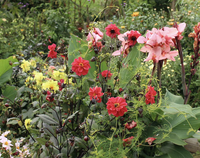 My confession is I find them kind of boring. They’re very neat and uniform, but I like flowers that sway in the wind. I like to see the bees working through them and plants which keep putting up more buds with larger flowers and unusual petal types. Once again the dream of a perfect garden with ribbons and pools of fall color falls to the wayside in favor of ‘interesting’. Oh well 🙂