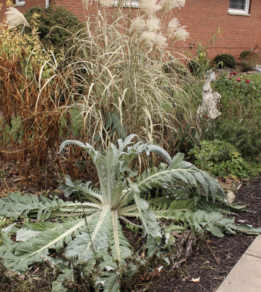 Monday morning we woke up to a frosty morning. It’s just a touch of ice and many of the natives are just fine, but tender stuff like dahlias and cannas from Mexico and points south got burnt, and will now need lifting and winter protection in order to make it through the approaching cold.