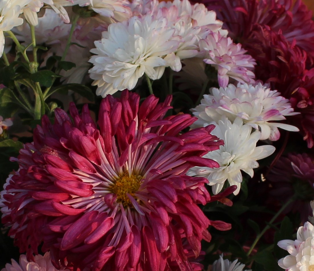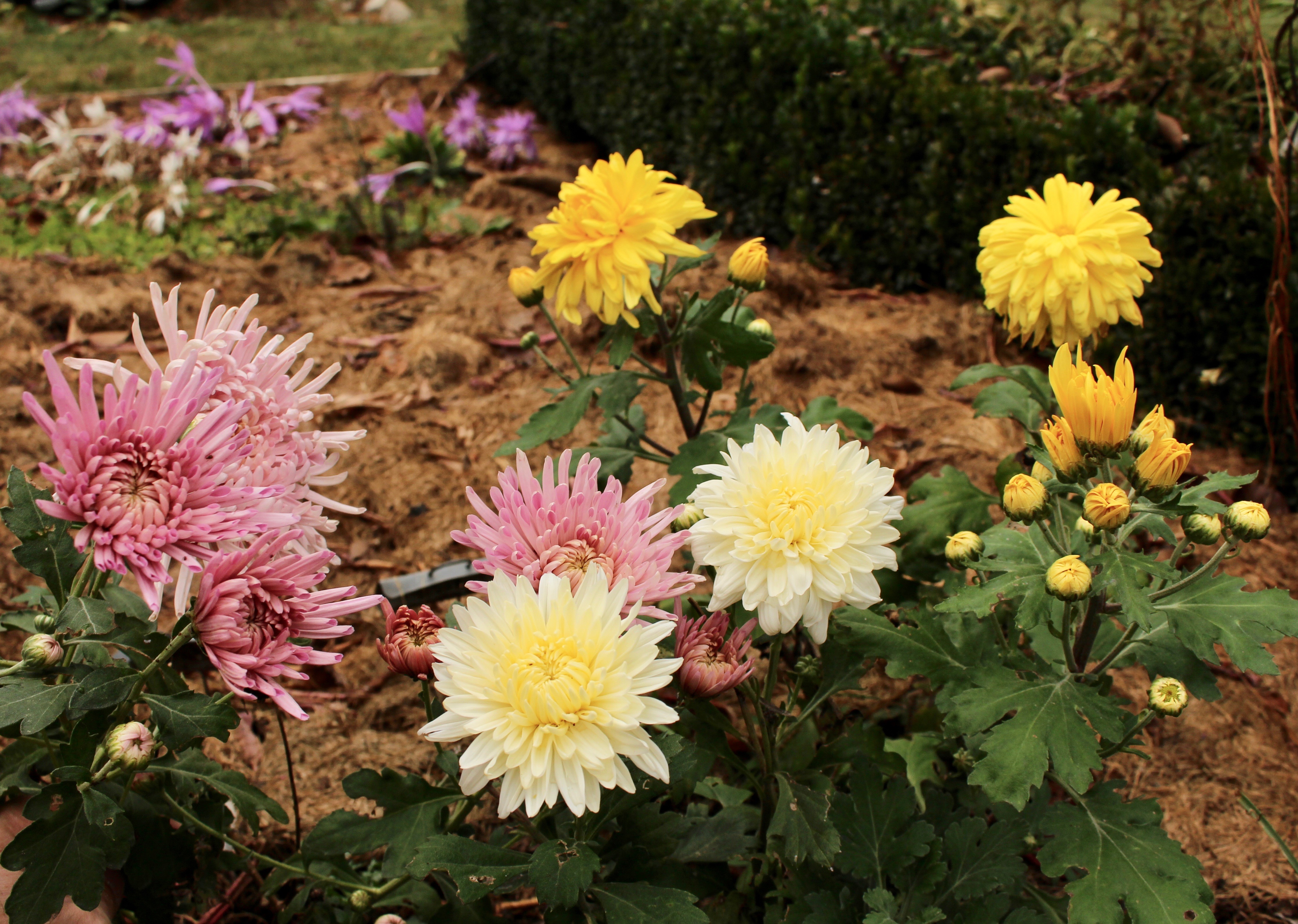 The ‘thousand bloom’ chrysanthemums. A single plant grown and trained for a meticulously perfect show. The one in back is absolutely huge.