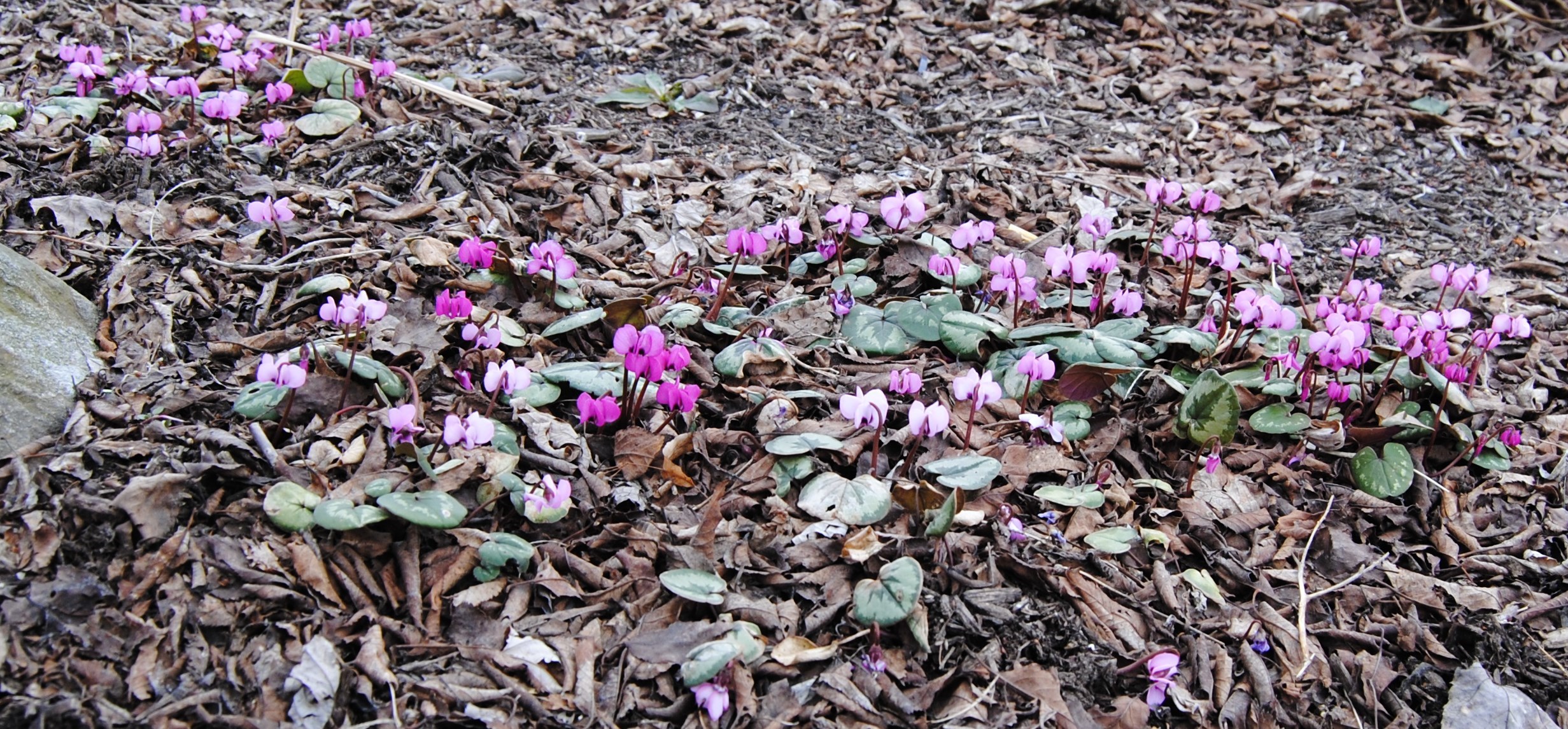 A few hardy Cyclamen coum in the garden