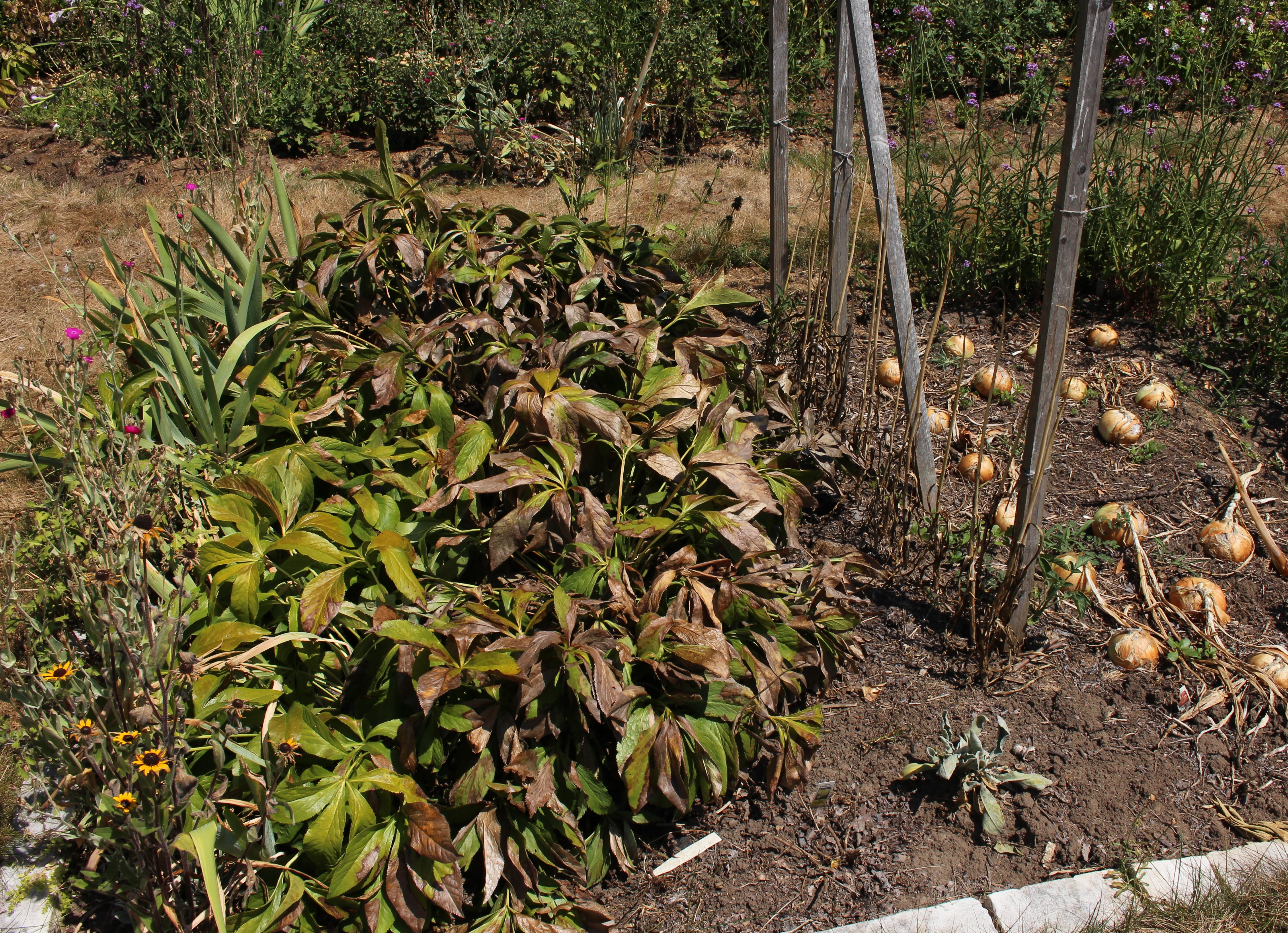 Don’t let my complaining fool you, it’s not all bad. I haven’t had to mow the lawn in weeks and last weekend the remains of the sand pile has finally left the driveway. Some progress has been made and maybe it’s about time I formally introduce the new potager. It’s very neat and tidy and my wife just loves it, but I’m missing some of the weedy overload of the old beds. July has just started and August is yet to come so it’s still early, and August has a way of encouraging weedy overload and tropical storms, so all is not lost.