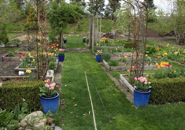 Ok, maybe a clump of pink tulips is the bulk of the ‘good’. The masses of flowers in the potager are missing this year and in spite of all the trouble and work they involve I really miss them. I blame dry weather when they should have been growing last year, I blame too much wet when they should have been going dormant, and I blame a gardener who got discouraged and then let mice and squirrels have their way with the curing bulbs. Whatever. Gardener forgiven and let me say I really am enjoying the tulips this spring even if my mood this morning does not lend itself to expressing that emotion.