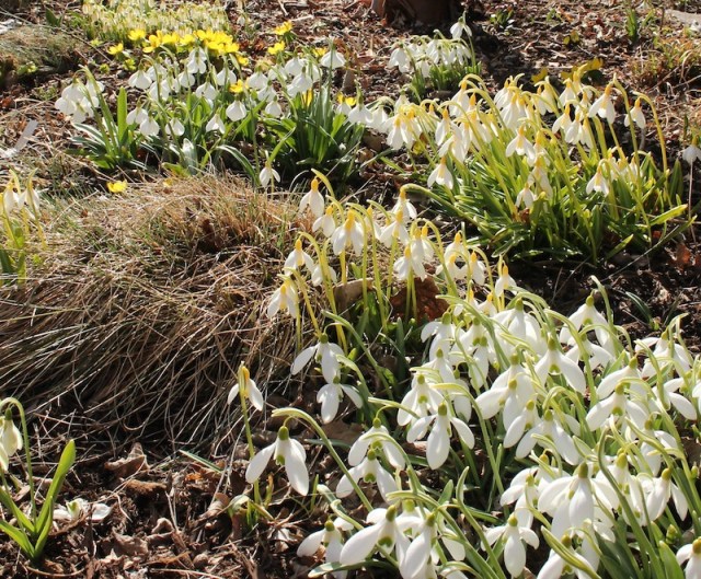 The woodland beds, aka snowdrop beds, are coming to life. The shredded umbrella plant (Syneilesis aconitifolia) is cool and I wonder how much cooler a named form with variegation or a purple or yellow flush to the foliage would be. Probably much much cooler.