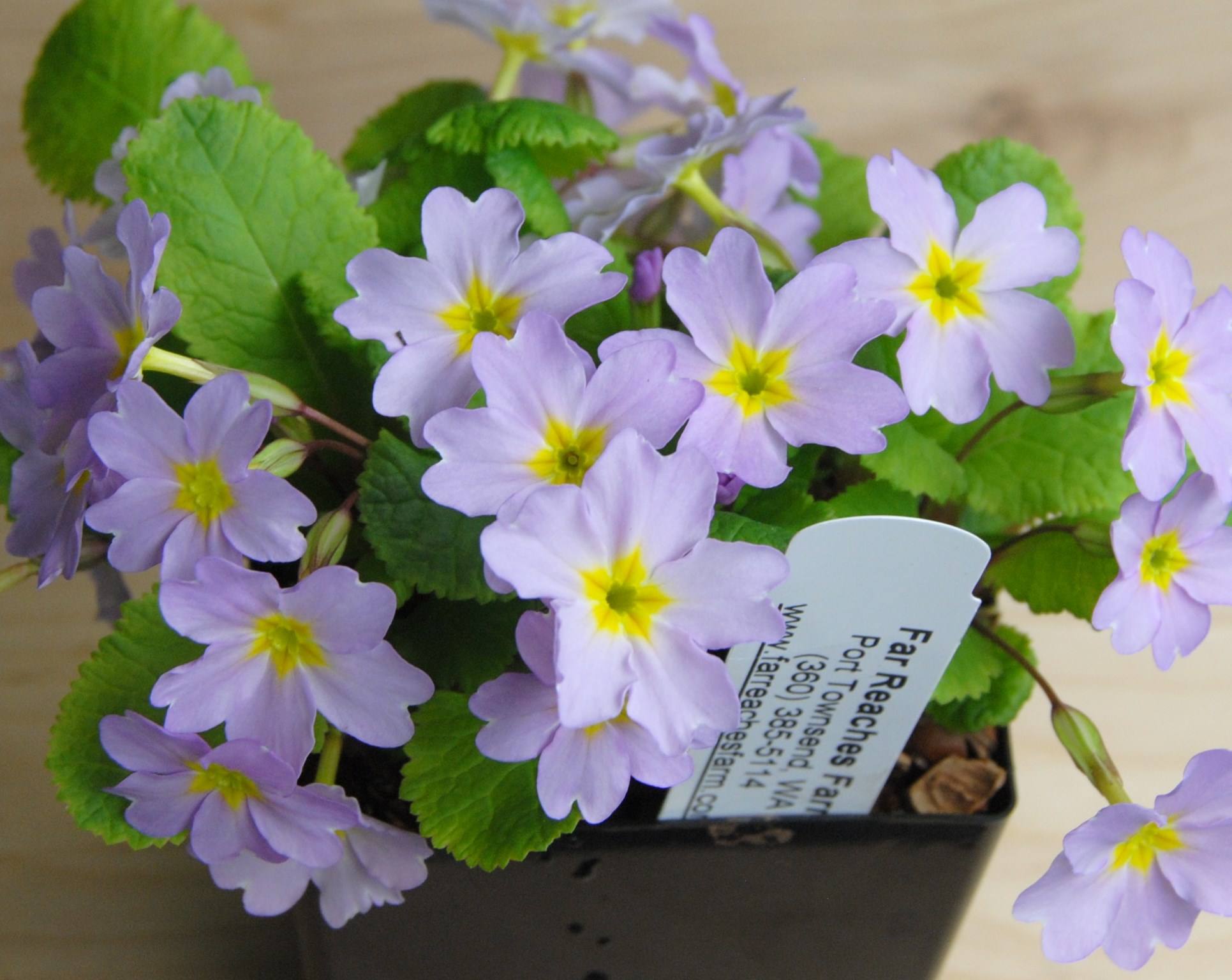 You might recognize the pinkish primula vulgaris ssp. sibthorpii from my Far Reaches Farm order in January. It’s lookin’ good! I can’t really take any credit for this since all I did was keep it warm and under lights, but it’s a nice treat here amongst the permafrost. Rumor has it that sibthorpii should have a white ring around the yellow center star or else it’s a mixed hybrid, but since mine has been grown under artificial lighting, it may not yet be showing it’s true colors.