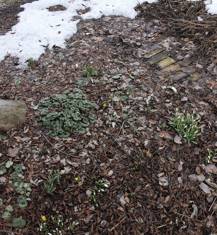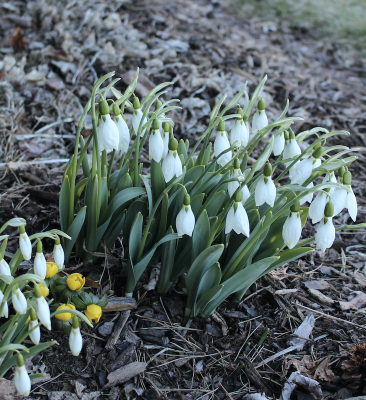 Galanthus ‘EA Bowles’ is amazingly beautiful but died off on me a few years ago. Fortunately a friend was able to give me another start and now he’s settled back in and doing well. Good thing, since my friend went on to lose her clump and now hopefully I can share a piece back again this summer.