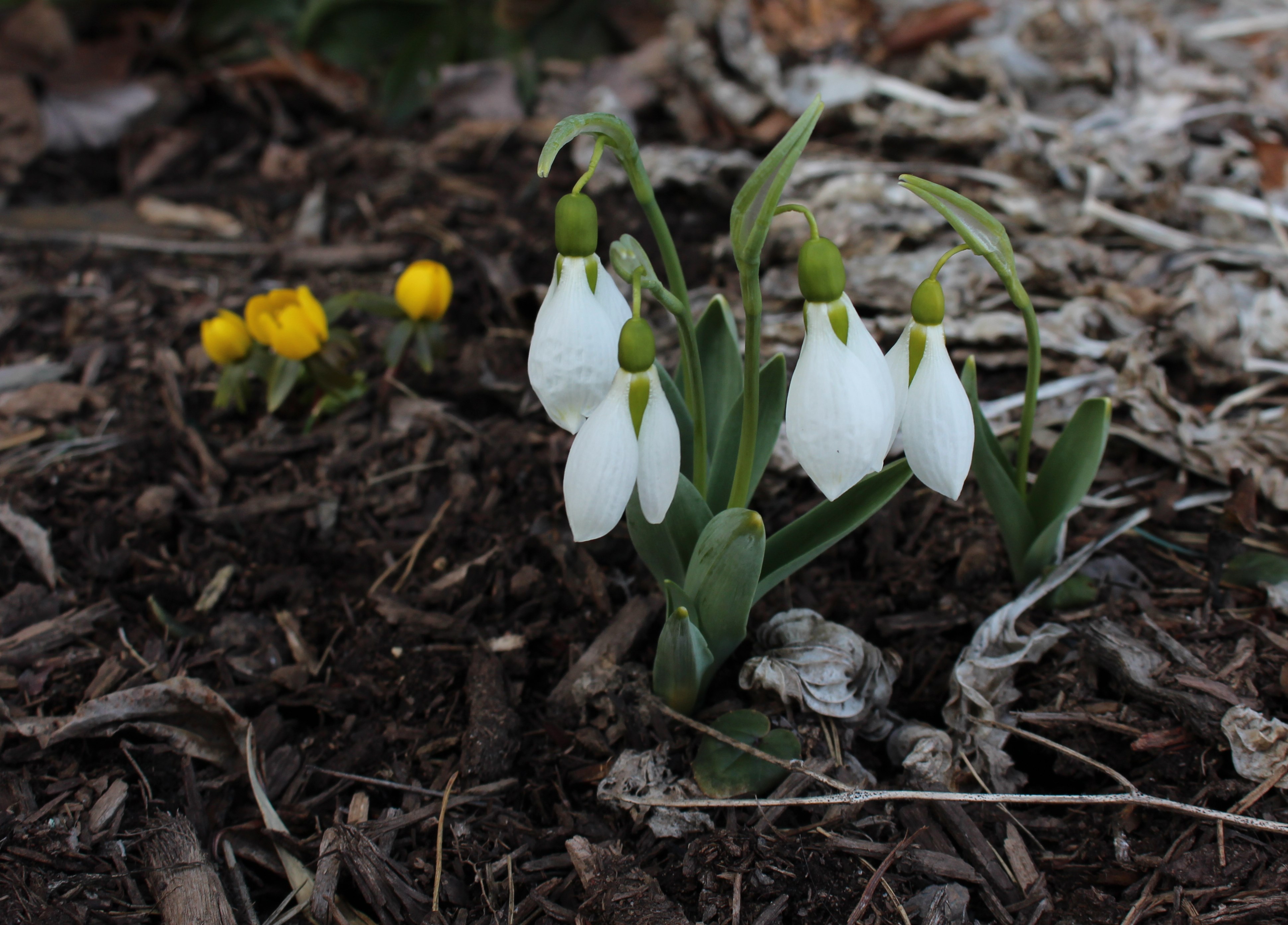 Year by year the snowdrops (G. nivalis) and winter aconite fill in. Hopefully I didn’t put too much mulch down for this year’s crop of seedlings to come up through.