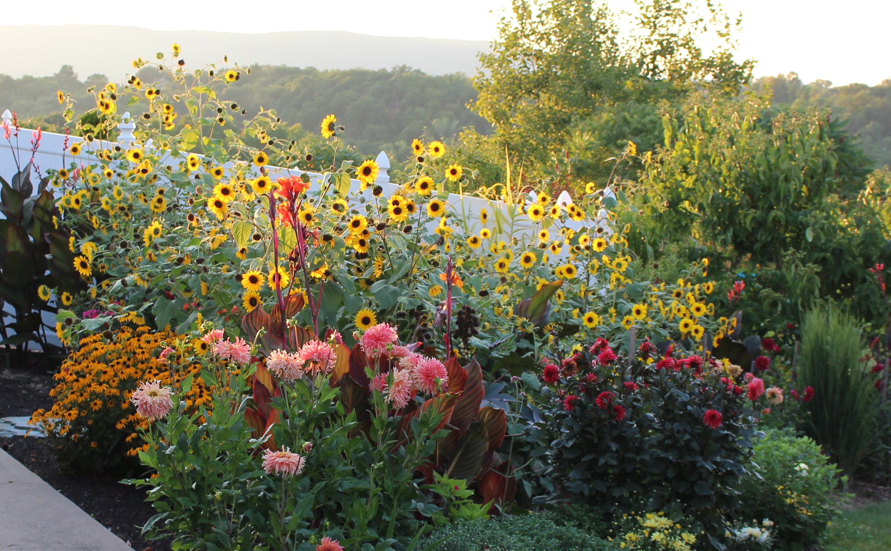 The front border along the street is reveling in a full-summer show of perovskia and coneflowers, but sunflowers haven’t seeded in like they normally do. I blame the dry spring.