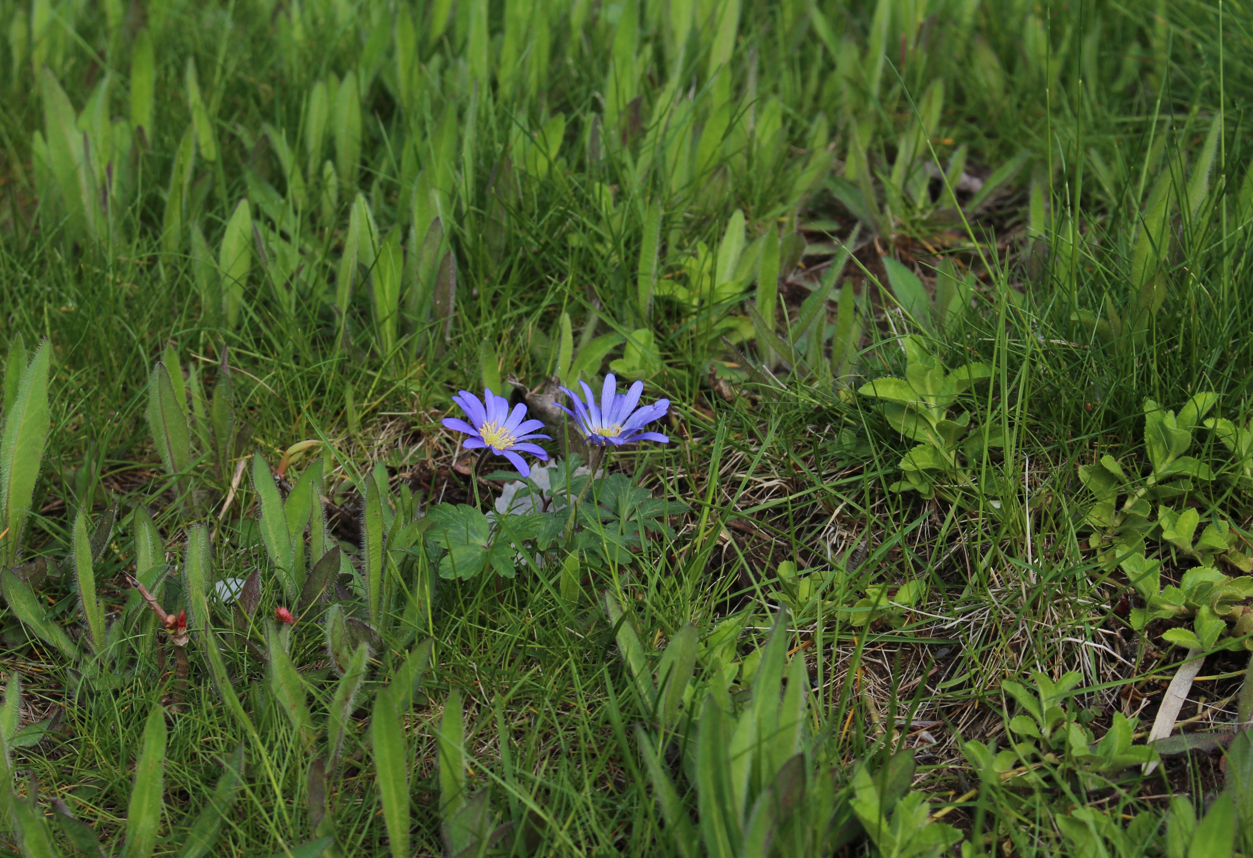 Not Anemone caroliniana? Pretty regardless, and it looks like it might be able to hold its own if I move it out into the thinner areas of grass.