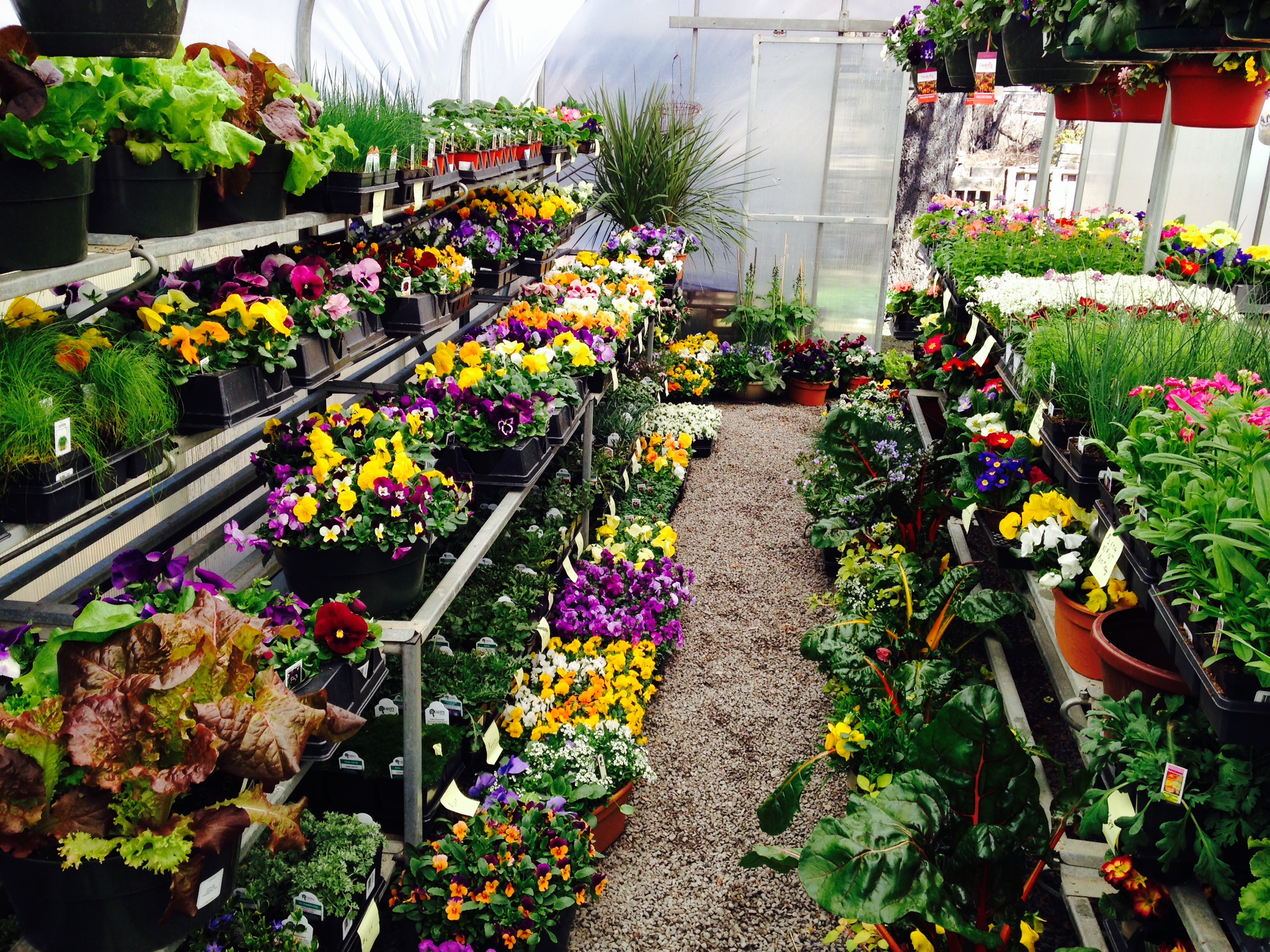 Perennial Point is my go-to nursery for the best plants in my neck of Pennsylvania. This was their opening weekend, and I’m always glad to see them back especially after nearly losing them three years ago when the Susquehanna River flooded, spreading plants far and wide and covering the whole place in over ten feet of rushing water. They’ve rebuilt, and the new and improved is overflowing with spring goodies. Here’s the interior filled with more delicate things not ready for the frosty nights.