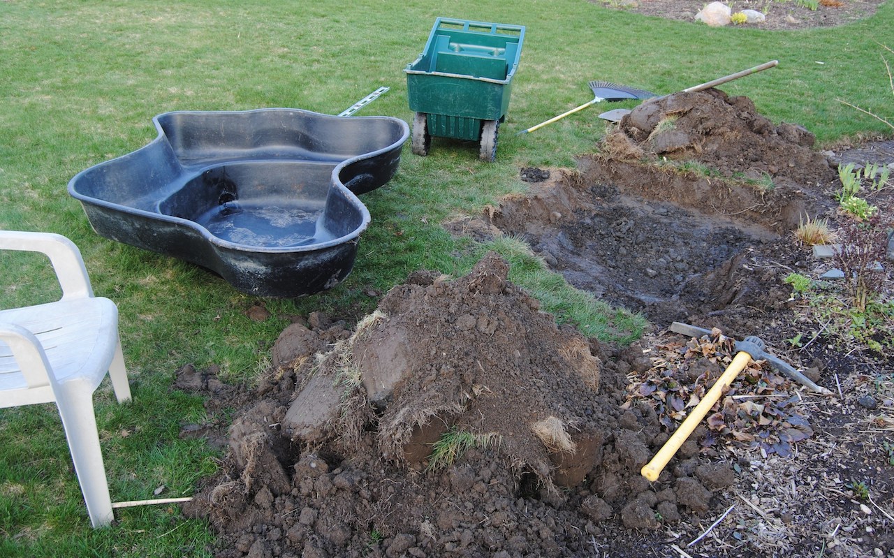 It still looks mighty ugly but hopefully I can blend it in somehow. I think the shape is called natural, but there’s nothing natural about the way it sits all plastic and stiff in the hole. But the birds don’t care, I barely walked 15 feet to get a rake and the birds were sneaking in for a bath. Looks like it’s going to be popular. It’s already popular with the kids, but all they seem to want to do is throw things in. Rocks, dirt, and tools are all fair game.