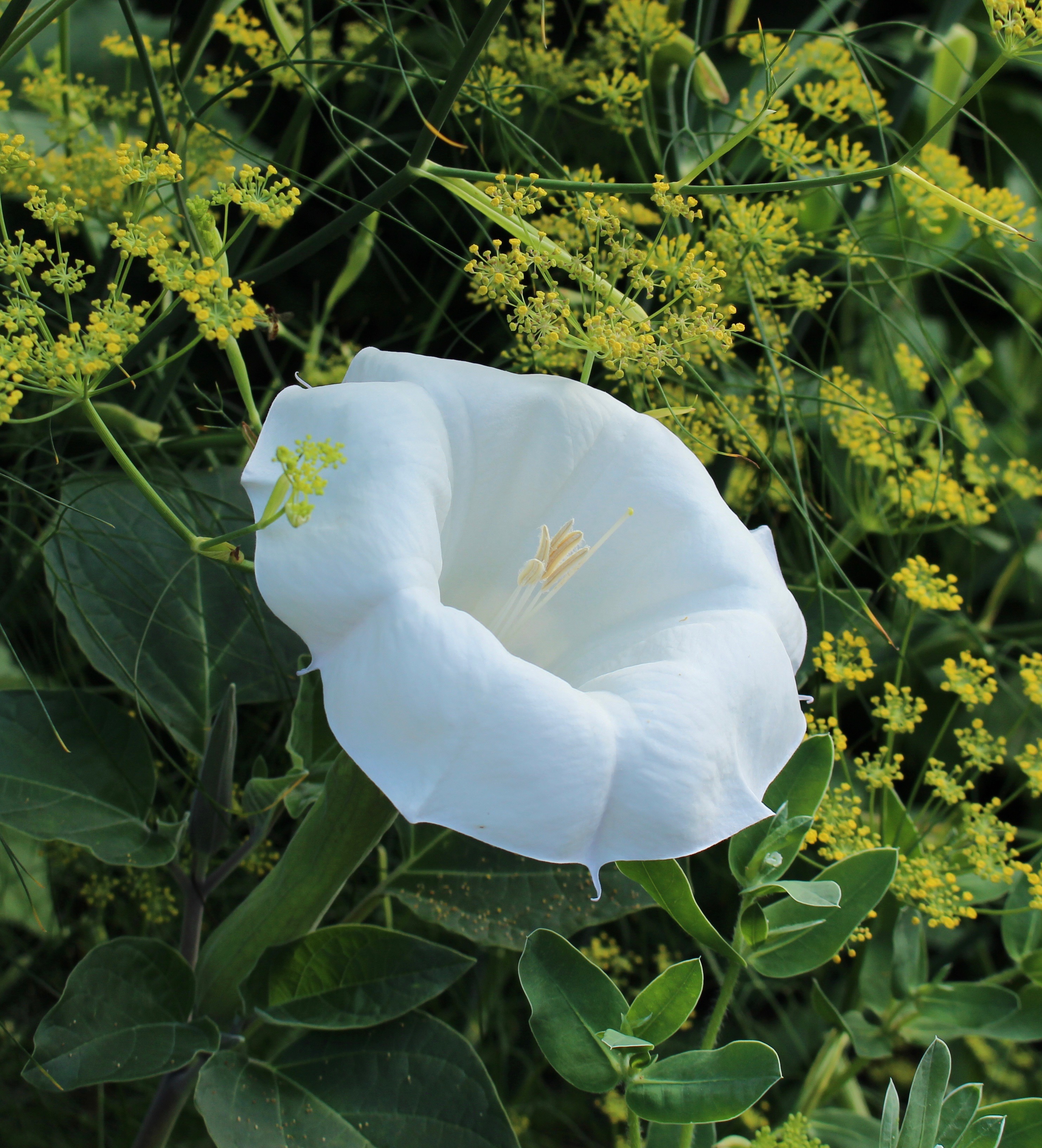 The rewards of messiness.  Devils trumpet seeded out in a cloud of volunteer fennel.  Not bad for a weedy snowdrop bed.