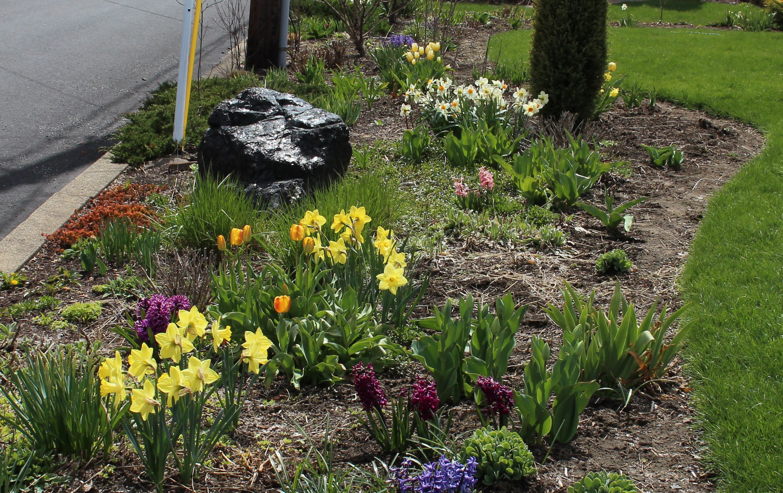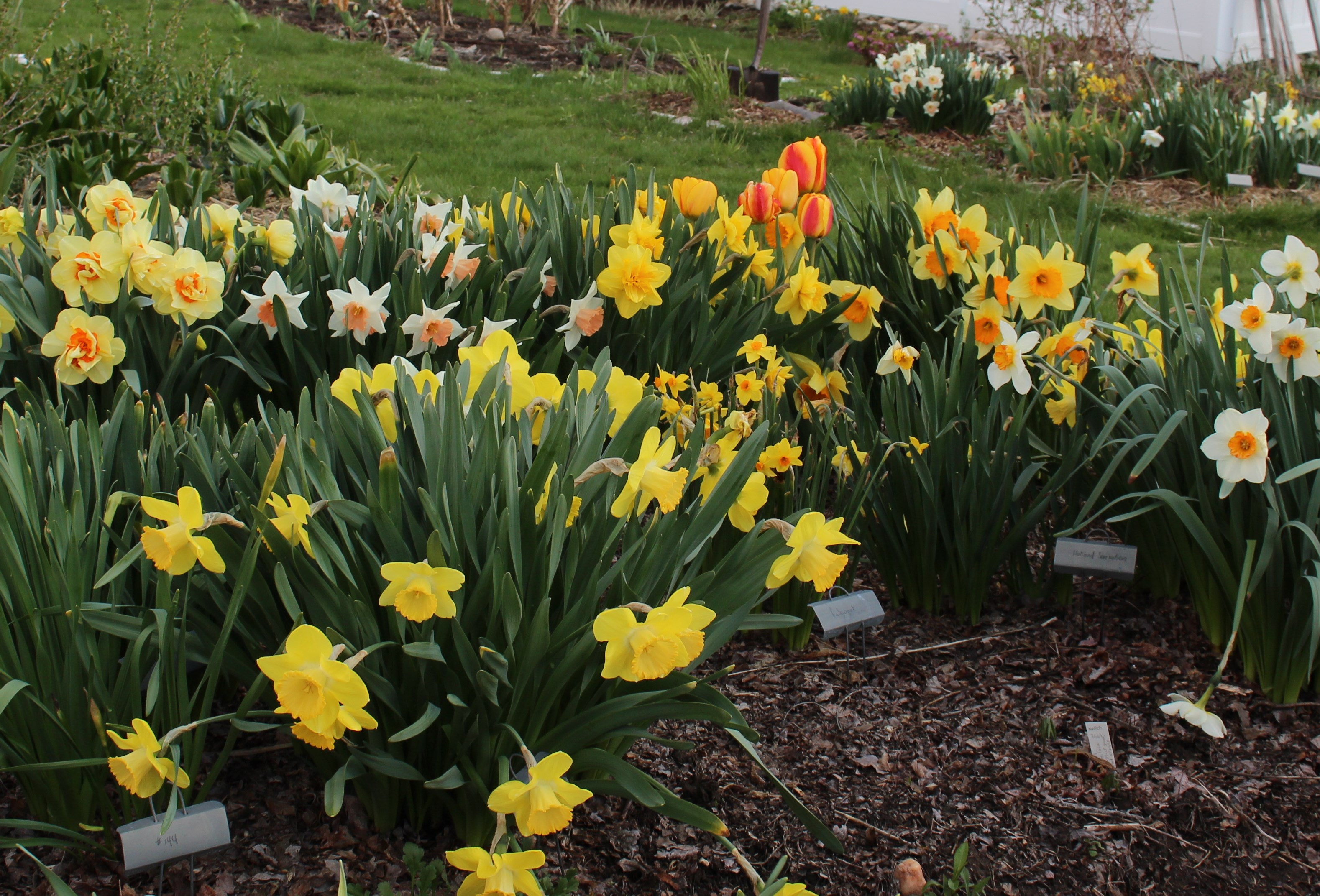 The start of May is always an exciting time because for us it’s that part of spring when everything just explodes into growth. We might be a little behind this year, but you still can’t beat the first of May. The biggie bulbs like daffodils and tulips are taking off now and the front bed has finally been resurrected from its winter drabness.