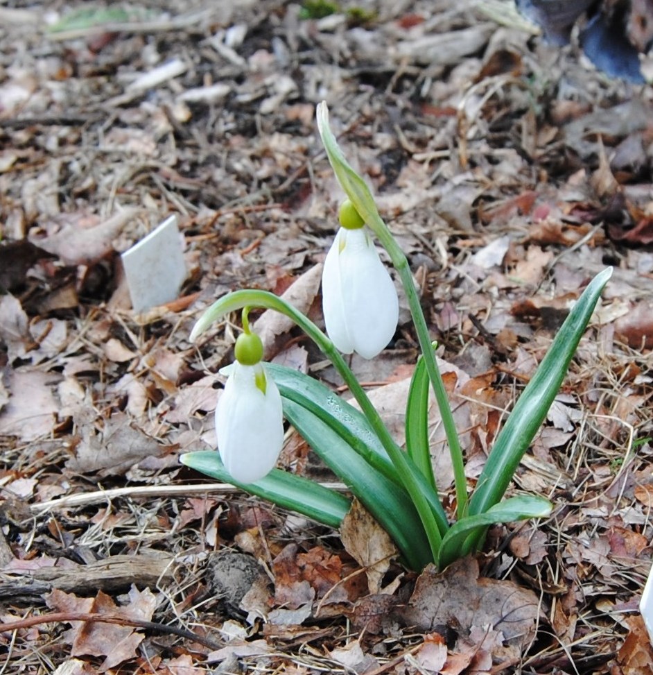 To finish things off here’s my beginner’s (non-botanical) view on the different snowdrop species.  The distinctions tend to get a little fuzzy for me and figuring out the exact differences is beyond me, but each type can (or did) in some way contribute to the variations in white which are garden snowdrops.  20 or so species are recognized today, but these are the most common and I’ve found that knowing the characteristics between them helps me as a beginner make sense of snowdrop talk.  For all the fuss made over flowers and markings and color you would think that’s what you look at, but for most of these it’s the leaves which contribute most to the ID, and here’s what I have so far: